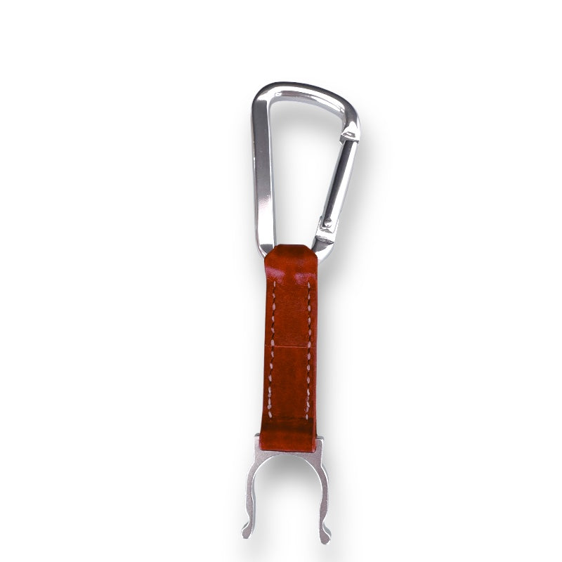 カラビナ付きのペットボトルホルダーなので、ベルトループやバッグなどに装着できて持ち運びが便利です。U次型の金具はペットボトルに挿しやすい形状になっています。