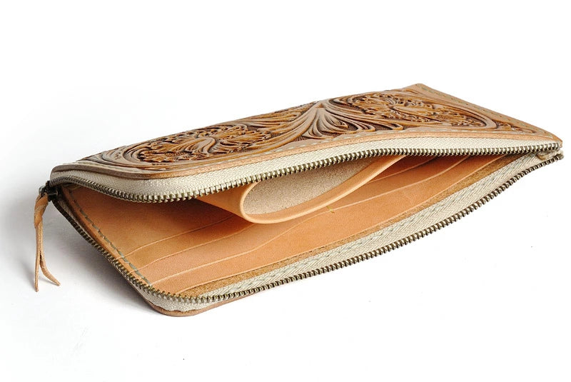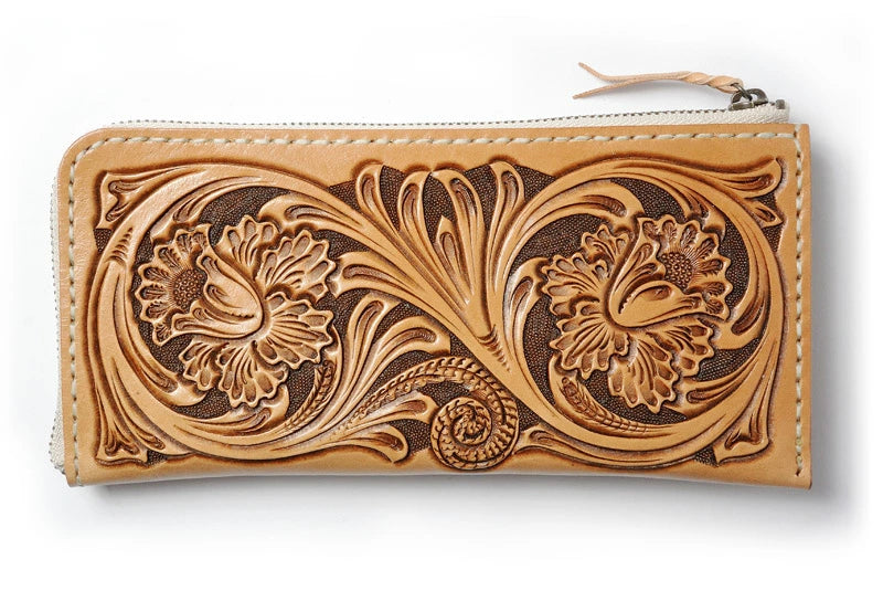 サムライクラフト Lファスナー ロングウォレット シェリダンスタイルカービング タンニング加工