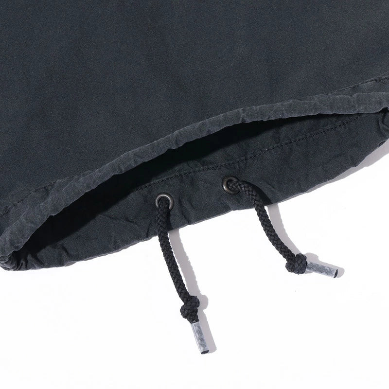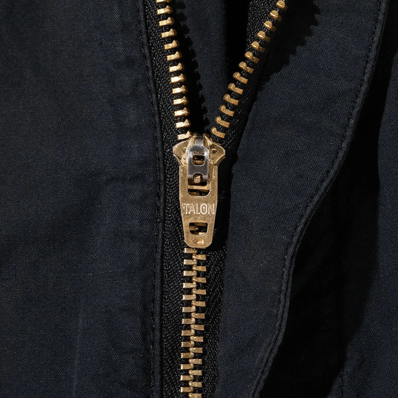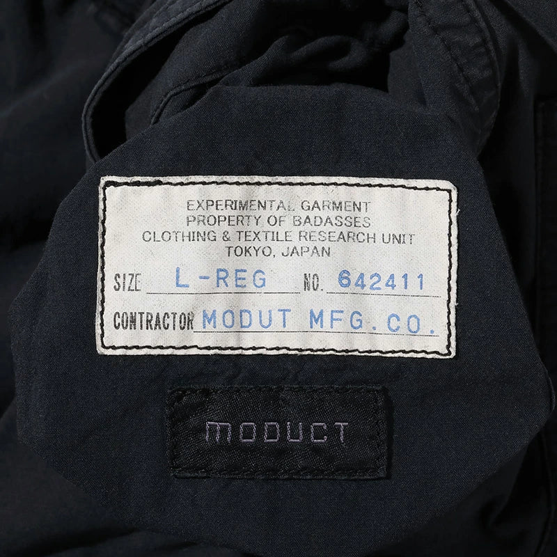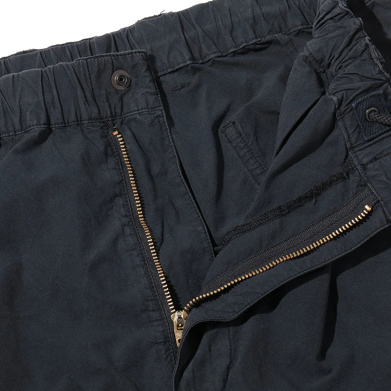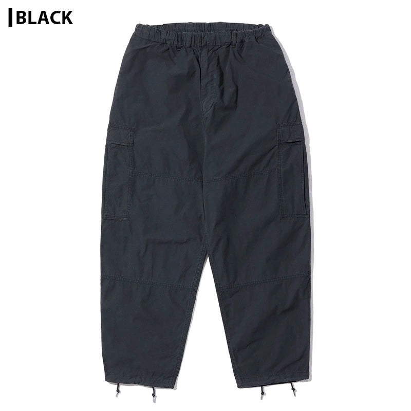 ブランドデビュー年にリリースしたMONKEY BUTT CARGO PANTSにマイナーチェンジを加えて製作。ウエストドローコードを内側へ移動、後太腿の切り替えを排除、ベルトループの追加を行っている。尻当て布と膝当て布は二重仕立てで補強。張り感のあるコットンナイロンウェザークロスにエイジング加工を施すことで、長年着用したような硫化染めならではの色落ちやアタリ感、パッカリングを表現している。。