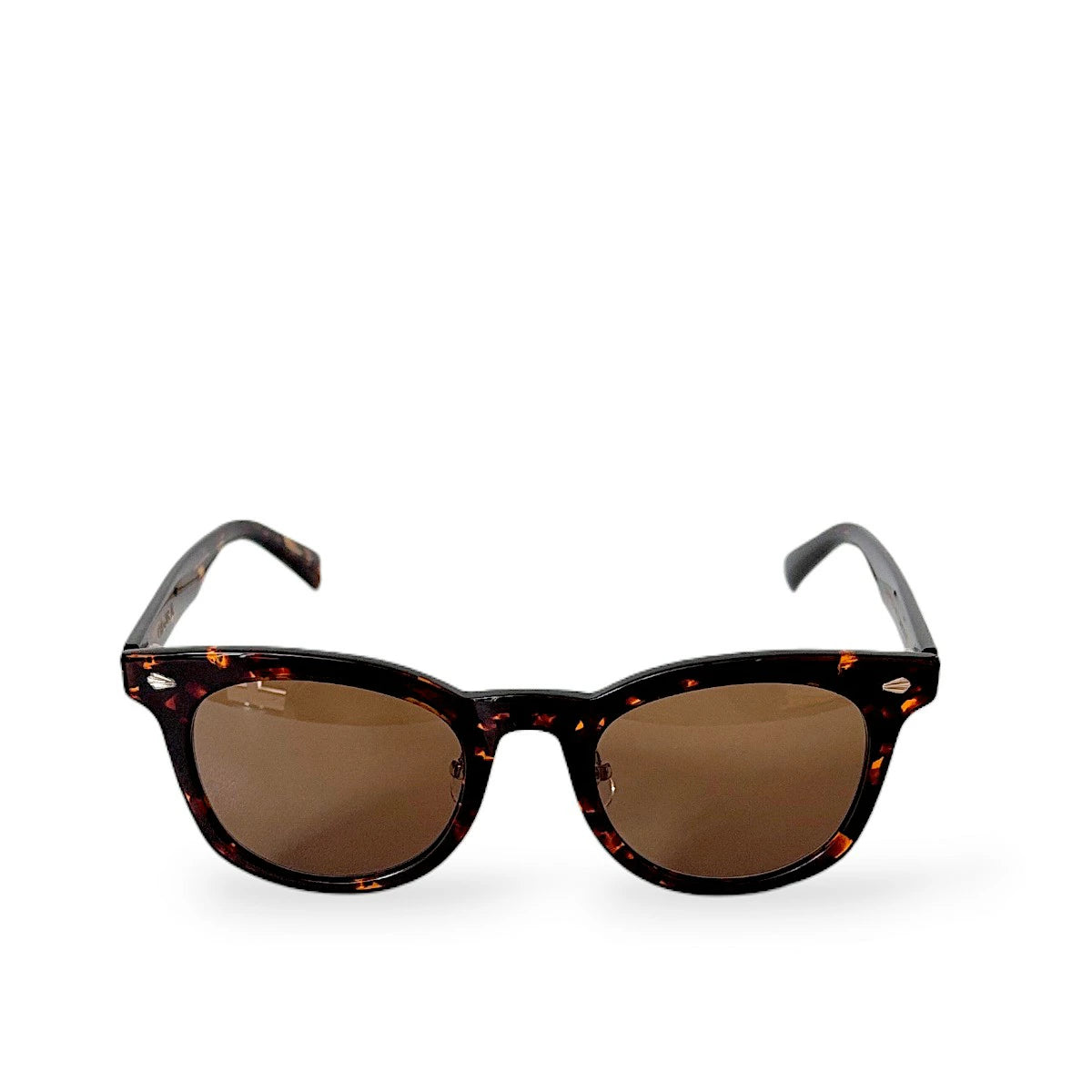 状況に応じてレンズ部分を上げることが出来る眼鏡。スタイルはスタンダードなウェリントンタイプで、デミ柄フレームには植物性由来のプラスティック素材であるアセテートを採用しています。