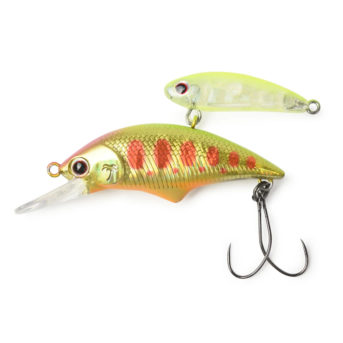長さや体高さといったサイズではなく複数のミノーを組み合わせることによって、魚にスイッチを入れさせる刺激の一つであるボリューム感を演出するアレキサンドラシェード。ステディリトリーブでは稼働域の大きいジョイントで繋がれた二つのルアーがまるで群れで泳ぐようにシンクロするアクションを見せます。イレギュラーなトゥイッチでパワーを入力すると背中に装着されたShade部がメーンミノーとは相反する動きをして誘惑。流れの中では背中の部分が抵抗となりルアーがアングラー側に寄ることを抑え、よりナチュラルにフィーディングレーンを長く漂わせることが可能です。アップクロス、クロスで威力を発揮、基本的なアクションはシェイク。大きくルアーを動かすというより背に載せたShade部分を動かす程度でドリフトさせて送り込むことが有効です。