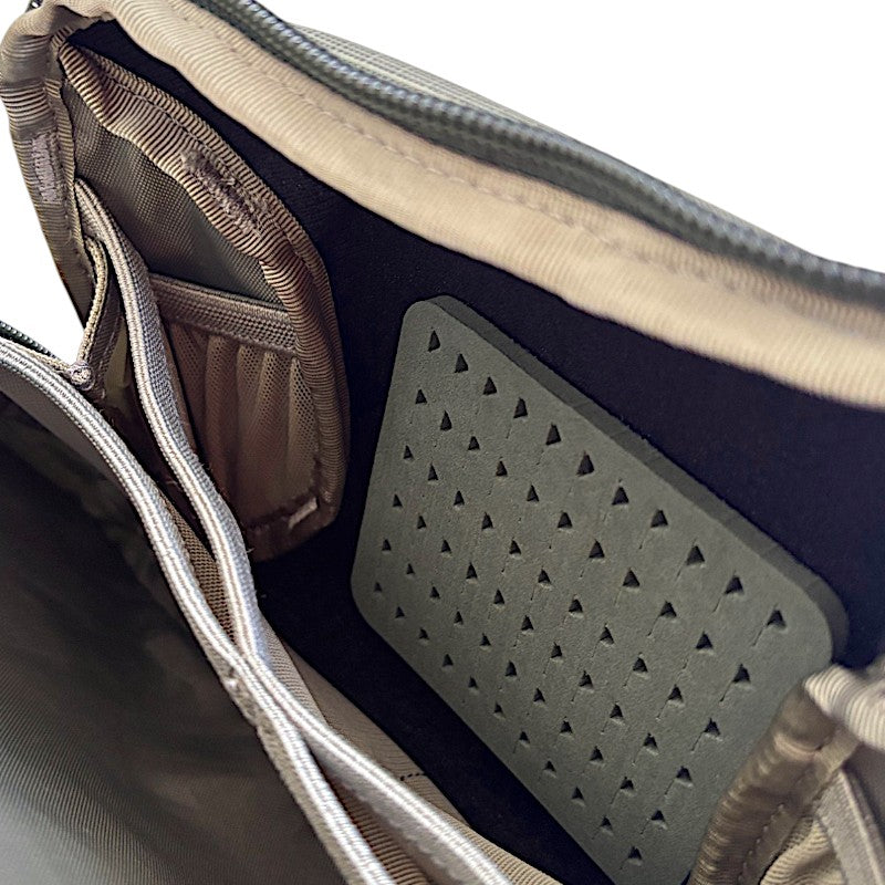 外側に複数のホルダーとフォーセップ/ピンオンリール用ドックを備え、整頓機能と収納力を強化。フロントパネルはワークステーションとしても使え、内側にフォーム製フライパッチ付き