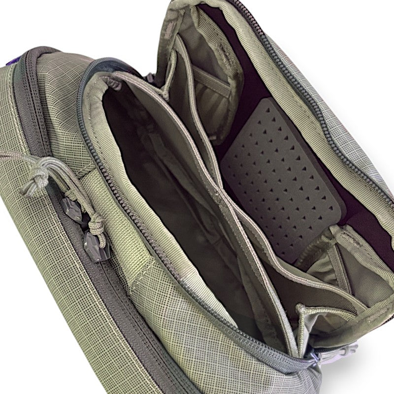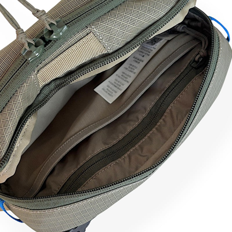 必要な物だけを運ぶためのデザインで順応性を高める技巧を凝らし、使いやすい機能を満載したのが容量5リットルのステルス・スウィッチ・パック。チェストパックとしてもヒップパックとしてもスリングパックとしても、あるいは他のパックに取り付けても使用可能。さまざまなギアを取り付けられるホルダー、一体型のマグネット、頑丈なジッパー、フォーム製フライパッチを備え、内側に複数のポケット付き。フェアトレード・サーティファイドの工場で製造