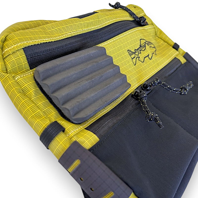 フライボックスといくつかの必需品、そして良質のブーツさえあれば何もいらないというときに最適なのが、容量3リットルのステルス・スウィッチ・パック。軽量でかさばらず多用途に使え、動きつづけるミニマリストのアングラーのために技巧を凝らしたデザイン。ウェーダーのサスペンダーにもベルトにも、他のパックやボートのストラップにも取り付け可能。フェアトレード・サーティファイドの工場で製造