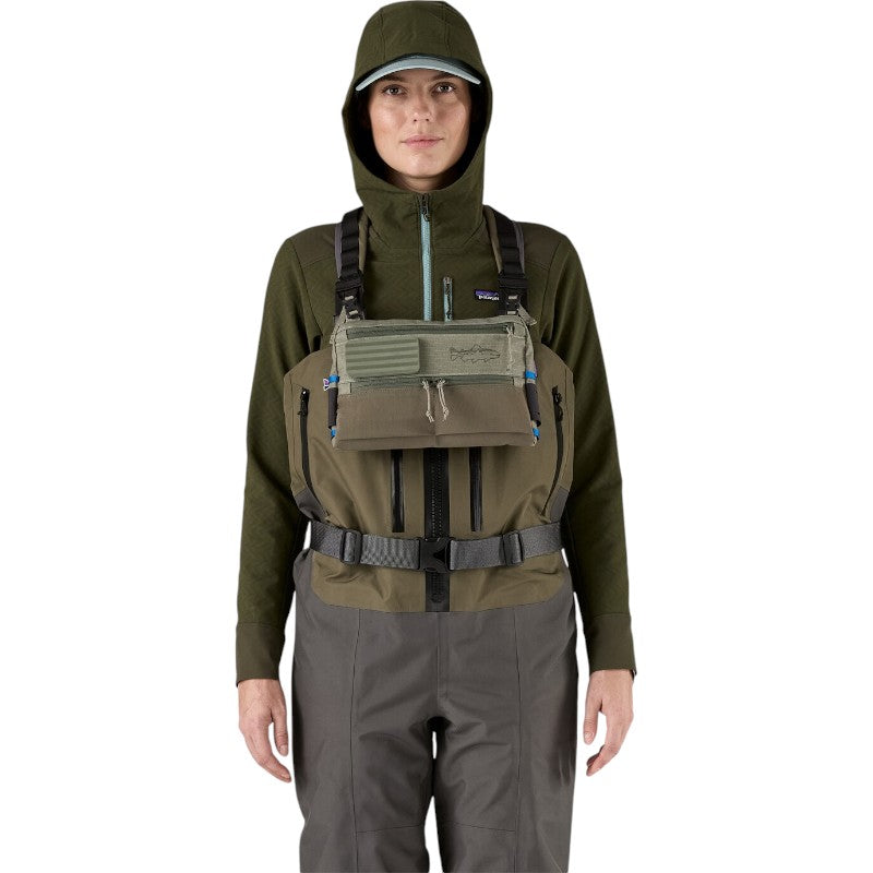 パックの両脇にフォーセップ/ピンオンリール用ドック、表側にフライパッチ、必需品を手近に取り付けておける複数のホルダーを備え、フロントには一体型のマグネット付きで、ジッパーは非腐食性