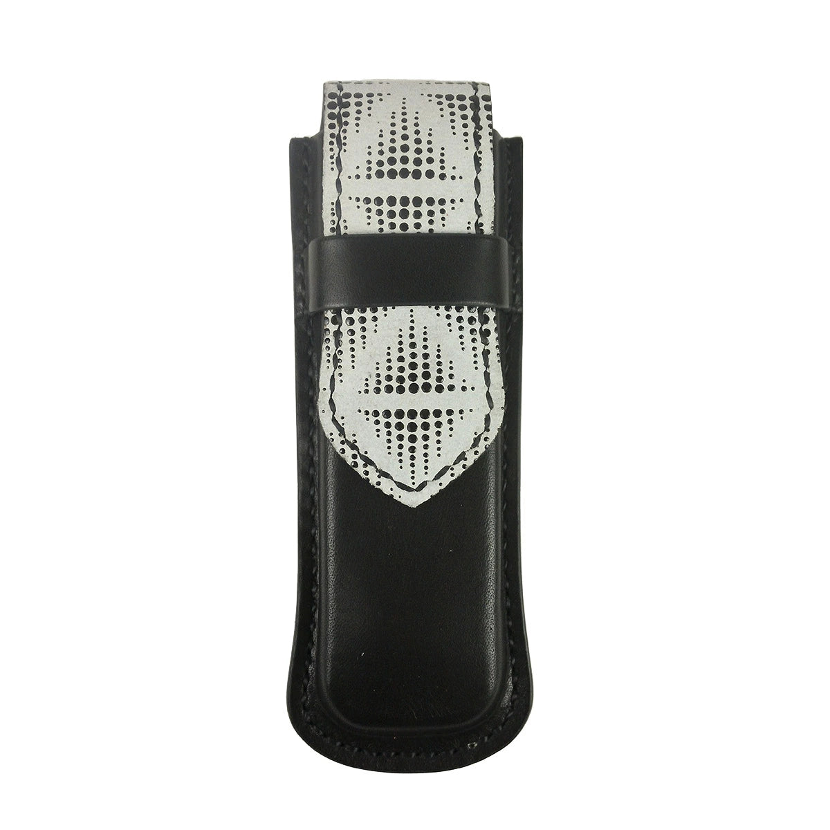 刀を握る柄巻部分に着想を得て「七宝」や「亀甲」など吉祥文様をあしらった印伝と、経年変化が楽しめるサドル/オイルレザーを使用している。