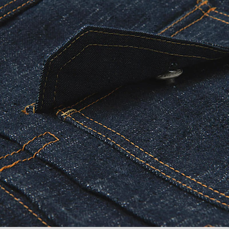 ダルチザンの新しい定番SD-1000番台『GL3シリーズ』は、このGL3の特性を最大限に活かすため糸の凹凸形状、糸番手、ロープ染色の色合い、縦横の打ち込み本数など、すべてにおいてダルチザンのオリジナルレシピで作られたデニムを使用しています。
