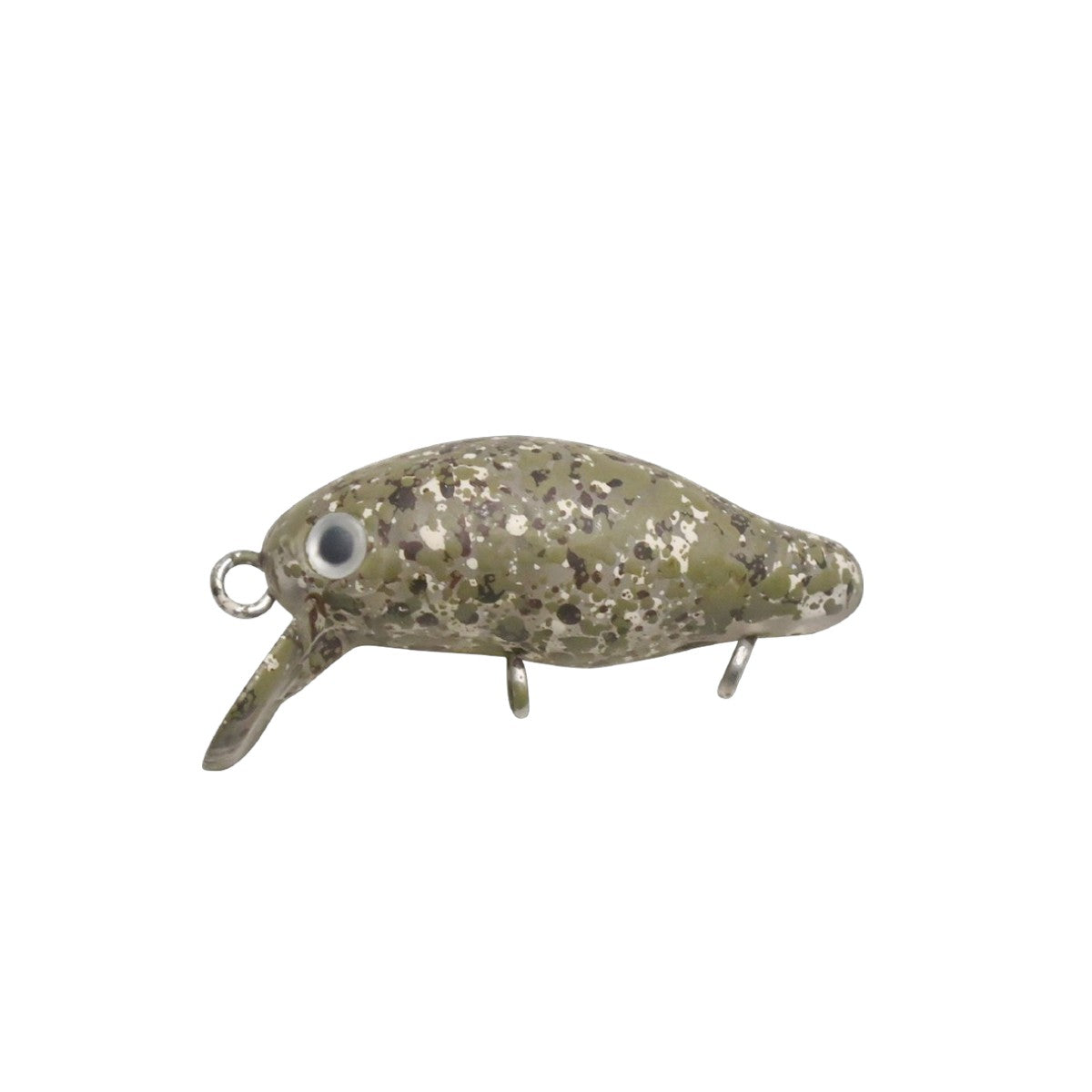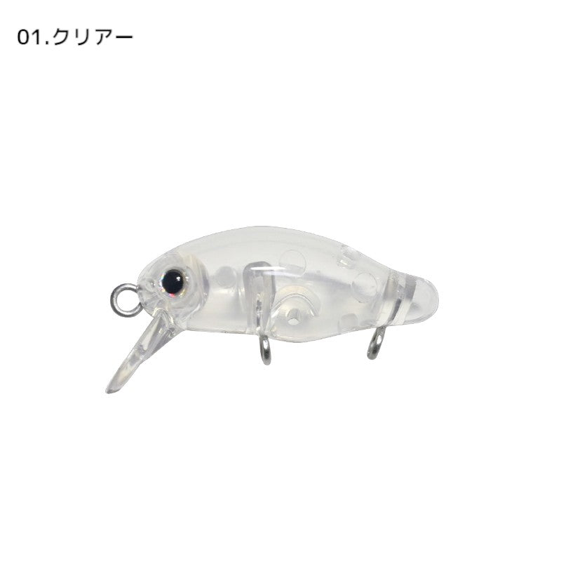 小粒ボディの中で、フロント・リアそれぞれの横アイを凝縮。横アイにする事でボディ内の空気質を最大限に確保し、フック絡みも最小限に抑えます。また、フロントフックとリアフックを後方寄りに近付け、 浮力が集中している箇所にフックを配置する事で“水面での踏ん張り力”を損なわず、フッキング率向上へと繋げます。