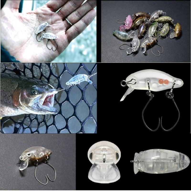 小粒なトップウォータープラグならではの課題点。 それは「再現性の高いフッキング力」が作り出しづらい傾向にあること。 過去にスミスで発売していたICミノーというルアーも、フッキングにかなり苦労するものでした。 そのままルアーボリュームを大きくすればオートマチックにフッキングしやすい傾向となるのも試作時点で確認済ですが、小粒且つ弱アピール設定だからこそバイトへと導ける環境があるのも事実。 そこで、パペットと使い分けが効く「アピールローテーションとして必要な小粒さ」を求め、その小粒さでも自信を持って魚へプレゼンテーションできるよう、次のような拘りを詰め込みました。