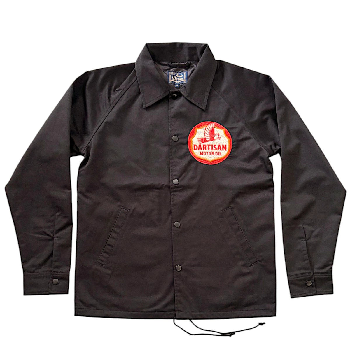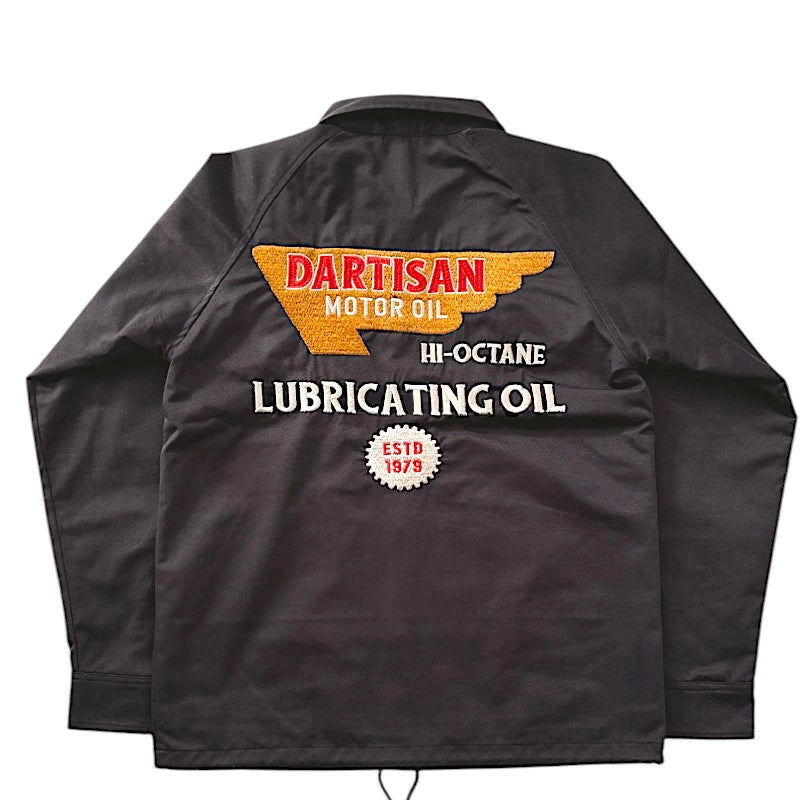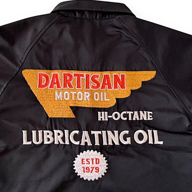 オイルメーカーのアドバダイジングジャケットをモチーフにデザインしたコーチジャケットです。 横振り刺繍は打ち込み本数を増やし、立体的で迫力あるデザインに仕上げています。 表地は綿とポリエステルの混紡により光沢を抑えた質感で、老若男女問わず着ていただけるジャケットに仕上がりました。 サッと羽織って気兼ねなく着れるコーチジャケットは年中重宝すること間違いなしのアイテムです。