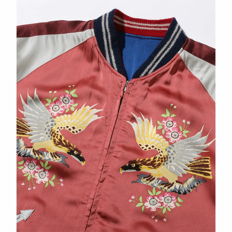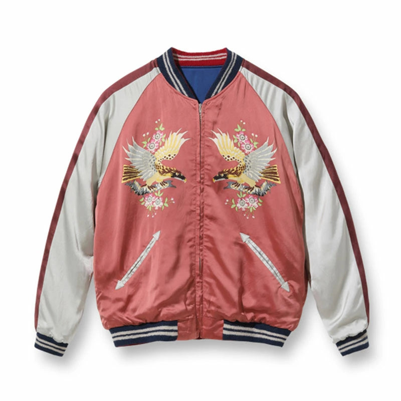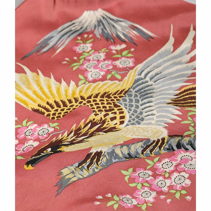リバーシブル面はプリントの鷲柄で、近代的な機械のプリントではなく、1色ずつ版を作り、その版を手作業で摺り重ねていく手捺染(ハンドプリント)によるもの。手間と時間、そして高度な技術を要するため、当時の生産も極少数。ヴィンテージ市場では入手不可能と言っても過言ではない。「スカジャン展」の主役のひとつにも選ばれたその希少な鷲柄を、2023年春の新作として復刻する。