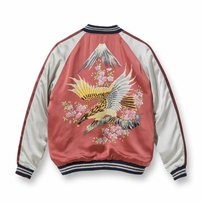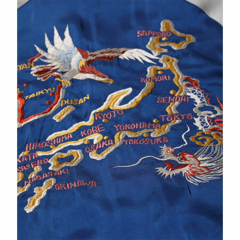 【 TAILOR TOYO 】テーラー東洋 スーベニアジャケット スカジャン 港商 TT15277-125 JAPAN MAP × CHERRY BLOSSOMS & EAGLE (HAND PRINT) 刺繍 ハンドプリント 日本地図 桜 イーグル 鷹