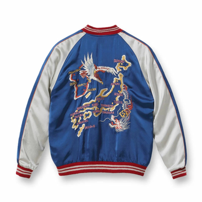 日本地図を挟んで鷲と龍が睨み合う1950年代の作品。西の地名が多いことから、その周辺の米軍基地で販売されていた可能性が高い。ボディの配色と対照的な赤いリブもヴィンテージに準じた仕様。