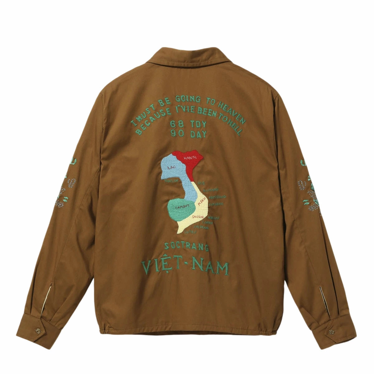 1960年代後期、ベトナム南部の都市 SOCTRANG(ソクチャン)に駐留していた米兵のカスタムオーダーによるもの。胸に虎と「福」の文字、背中にベトナムの地図を配したオーソドックスなデザインだが、袖の龍は他のベトジャンより一回り大きく、緻密に刺繍されているのが特徴。マップ部分は一見同じ配色にみえるが、実際はボディのカラーに合わせて色味を変えており、ベトジャンならではのマットな刺繍の魅力を完全再現している。