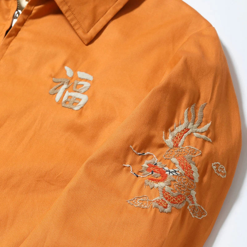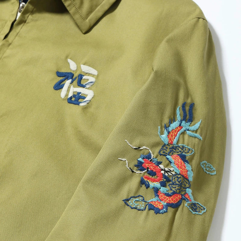 戦後の日本で誕生したスカジャン同様、1960年代から1970年代のベトナム戦争時に生まれたスーベニアジャケットが、通称ベトジャン。コットンツイル、もしくはカモフラージュ柄のポンチョライナーの2種類の生地が主に使われ、マットな太めの色糸で絵柄が刺繍されている。
