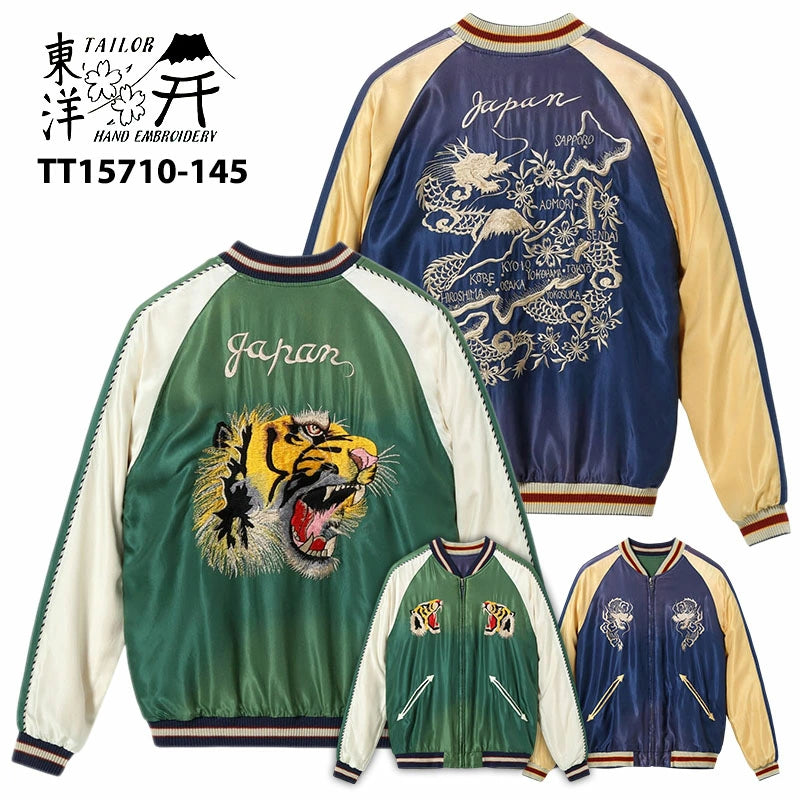【 TAILOR TOYO 】テーラー東洋 スーベニアジャケット スカジャン TT15710-145 TIGER HEAD × JAPAN アウター グリーン ネイビー エイジングモデル 虎 タイガー 龍 富士山 桜 ジャパンマップ アメカジ 2025SS