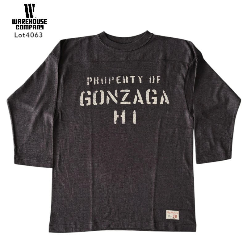 WAREHOUSE Lot 4063 GONZAGA HI 7分袖 フットボール Tシャツ 七分袖 スミクロ(ブラック)日本製