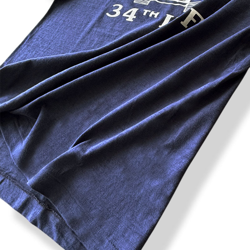 This is Warehouse’s standard body, knitted on a vintage low-gauge knitting machine said to be even rarer than loopwheel machines. Made with No. 12 uneven yarn, the fabric features a unique texture with subtle horizontal variations known as a “shadow border.” Though technically solid-colored, the unevenness creates a faint, stripe-like appearance across the fabric. Instead of an extremely dropped, modern neckline, it uses ribbed piping to reinforce the neck. As you wear it over time, the neckline naturally relaxes and develops a gentle, worn-in drape.