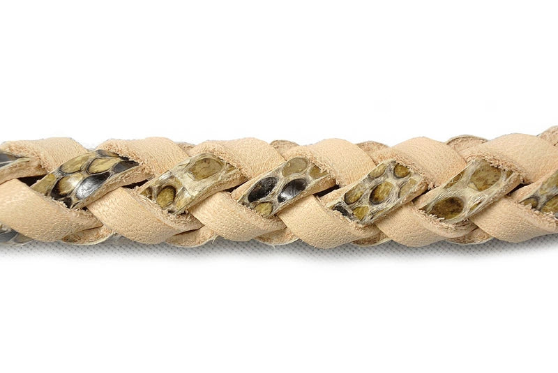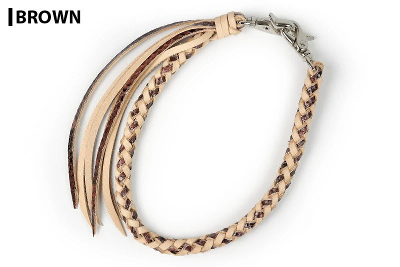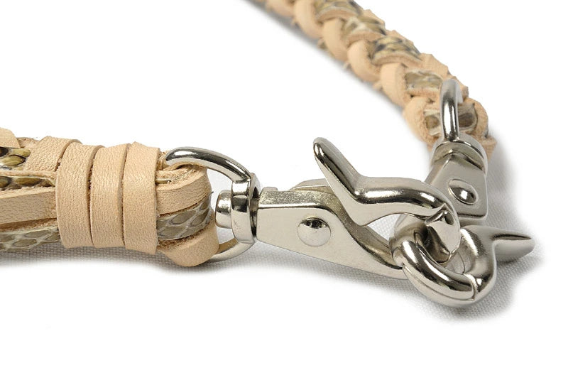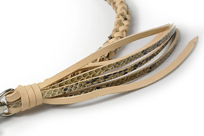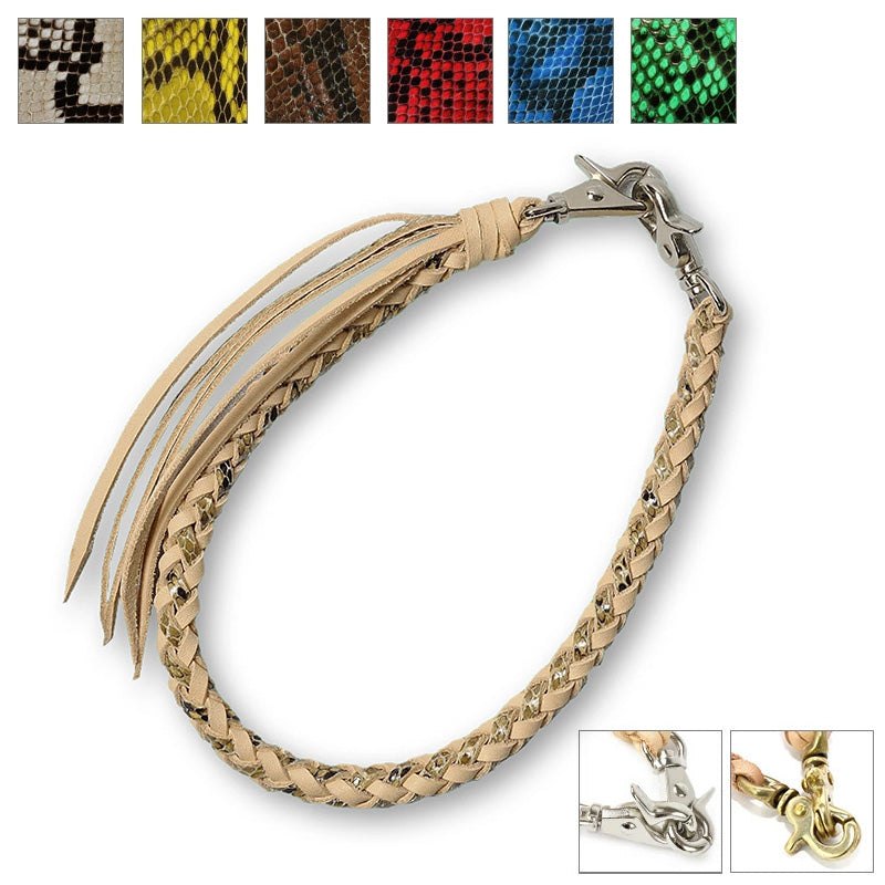 サムライクラフト ウォレットチェーン 6本編み ダイヤモンドパイソン × サドルレザー ナチュラル 蛇革