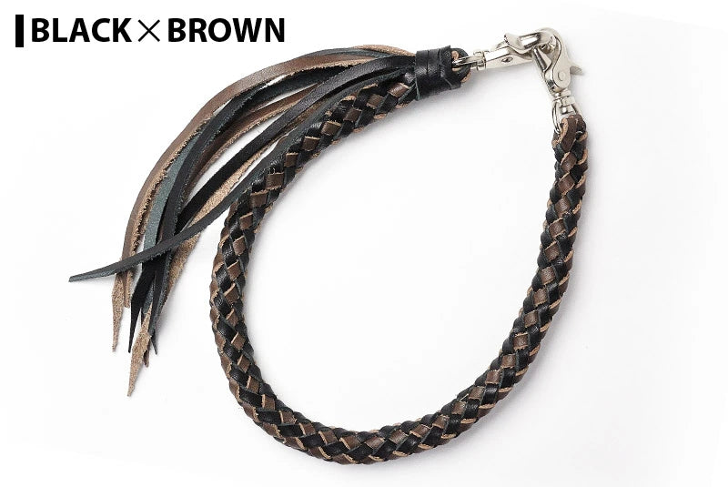 サムライクラフト ウォレットチェーン ダイヤ編み バイカラー 8本編み サドルレザー オイルレザー