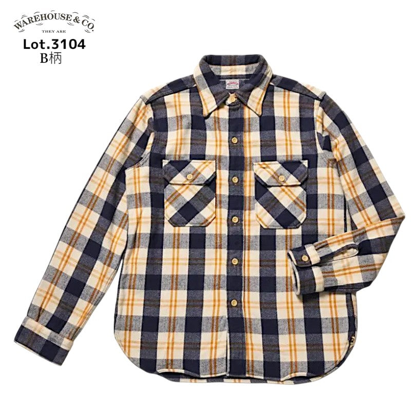 ウエアハウス Lot 3104 ネルシャツ フランネルシャツ ワンウォッュシュ B柄