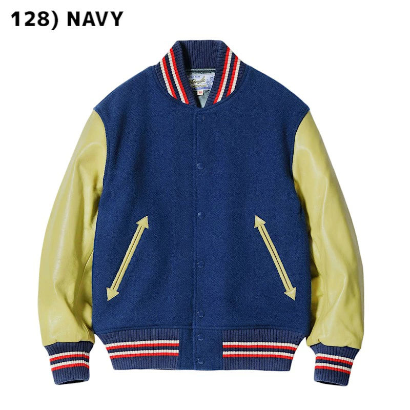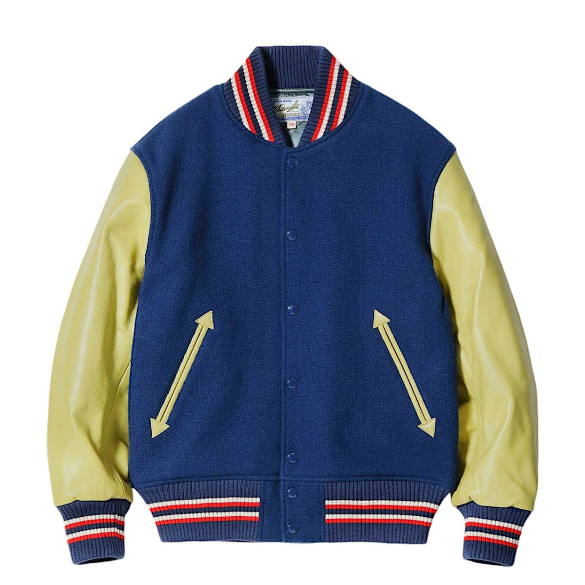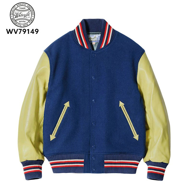 【WHITESVILLE】 スタジャン ホワイツビル WV15606-128 30oz.ウール メルトン アワード ジャケット SOLID 無地 ブルー アイボリー