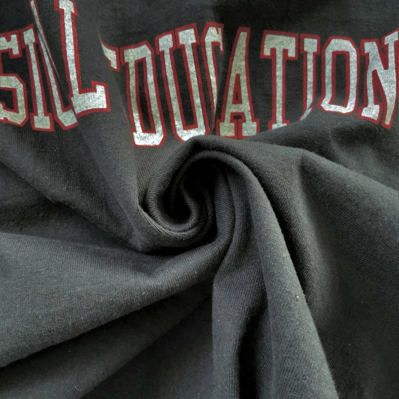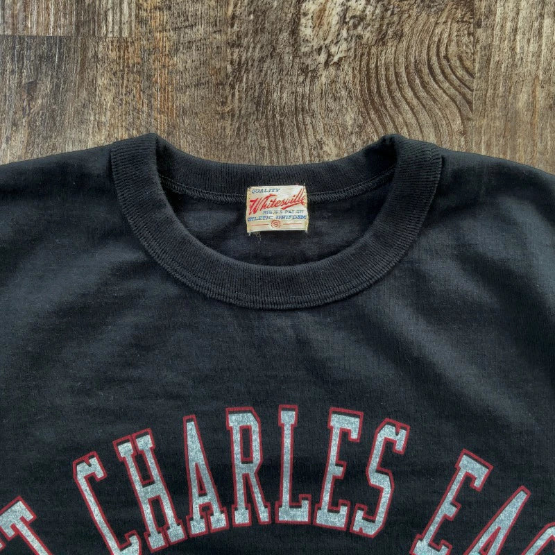 14番手の糸で編み立てられたヘビー天竺を使用したホワイツビル定番のTシャツをベースに、かすれ具合が絶妙なカレッジテイストのプリントを入れました。ヘヴィーウェイトコットン100%オリジナルボディを使用。首元もヨレにくいバインダーネック仕様で強固な仕上がり。